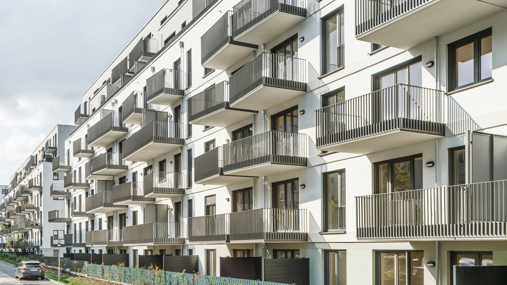 Das Grundstück an der Prenzlauer Promenade im Stadtteil Pankow-Heinersdorf liegt an der Schnittstelle von überwiegend großmaßstäblichem Geschosswohnungsbau und kleinteiliger Kleingartenkolonie. Das Konzept sieht vor, diese Schnittstelle durch eine abgeschlossene, räumliche Situation mit klar definierten Bezügen von Innen – und Außenraum zu akzentuieren. Die neue Bebauung gliedert sich in 4 Gebäude mit einem breiten Angebot von 1 bis 4 Zimmer-Wohnungen. Sie sind in Massivbauweise mit Putzfassaden ausgeführt. Realisiert sind insgesamt 278 Wohneinheiten unterschiedlicher Größe und Zuschnitts mit Balkonen oder Terrassen. Ausreichend Stellplätze für PKW sind in der Tiefgarage vorhanden. Die gemeinschaftlichen Freiflächen sind bepflanzt und als Spielplatzflächen genutzt.